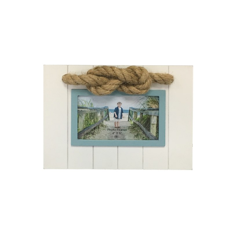 4" x 6" White and Teal Rope Knot Frame