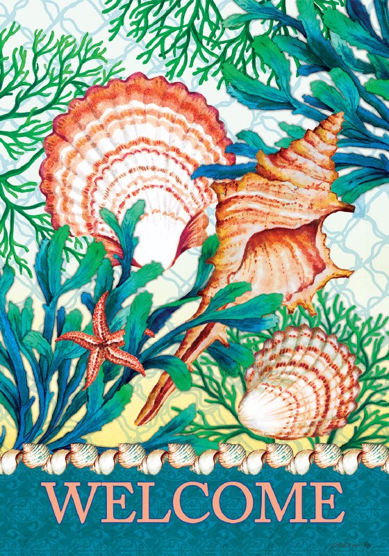 40" x 28" Coral and Teal Seashell Welcome House Flag