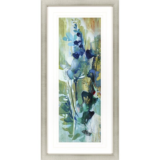 46" x 22" Dark Blue Center Flowers Framed Print Under Glass