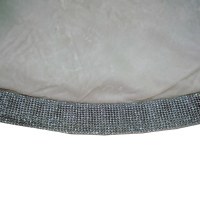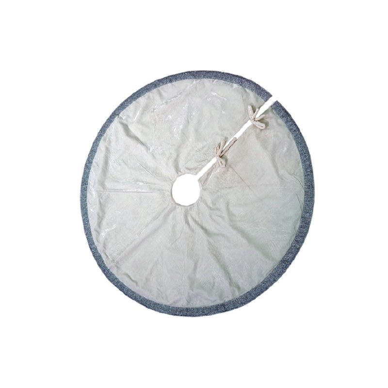 The Christmas tree skirt features a refined white base fabric accented with a subtle silver trim, giving it a soft shimmer that brings a touch of elegance to any holiday décor. At 48 inches in size, it's ideal for adding a crisp, festive finish beneath your tree.