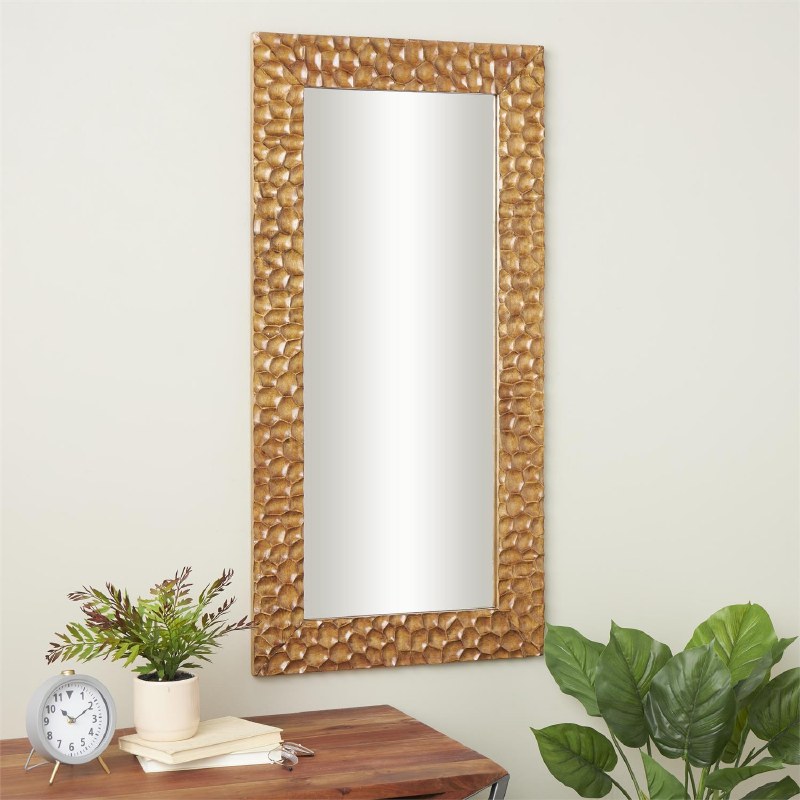 Honeycomb floor mirror features a rich, varnished brown finish that adds a touch of elegance and warmth to your space
