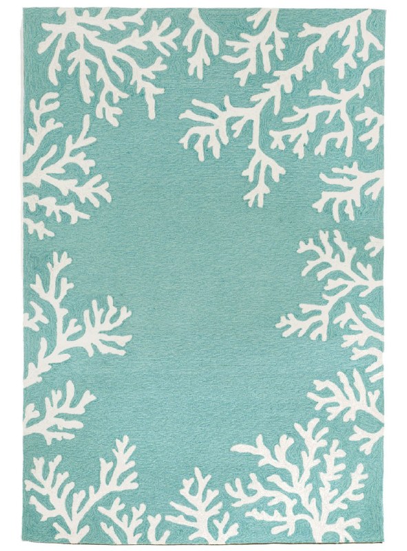 This hand-hooked area rug features a vibrant aqua blue background white a coral motif border. A classic, subtle tropical motif, this rug will effortlessly compliment any space inside or outside your home. Made in China from a polyester acrylic blend, the Capri Collection is hand tufted to create bright multi-toned detailed designs with a high-quality finish. The material is flatwoven, weather resistant and treated for added fade resistant making this the perfect rug for indoor or outdoor placement. This soft, durable piece is ideal for your patio, sunroom and those high traffic areas such as your entryway, kitchen, dining room and living room. A fresh take on nautical decor, these area rugs range in style from coastal to tropical motifs that beautifully accent your home decor. Limiting exposure to rain, moisture and direct sun will prolong rug life.
