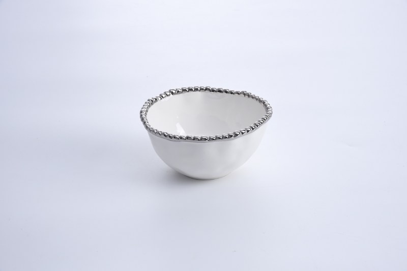5" Round White and Silver Beaded Ceramic Bowl by Pampa Bay