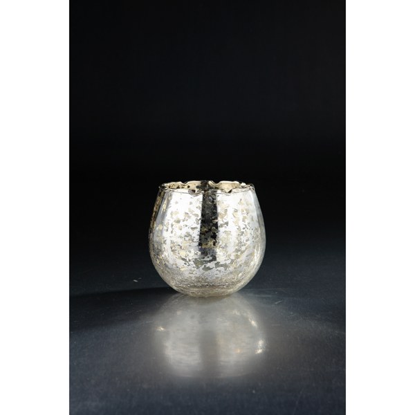 5" Silver Gold Round Crackle Glass Votive Holder