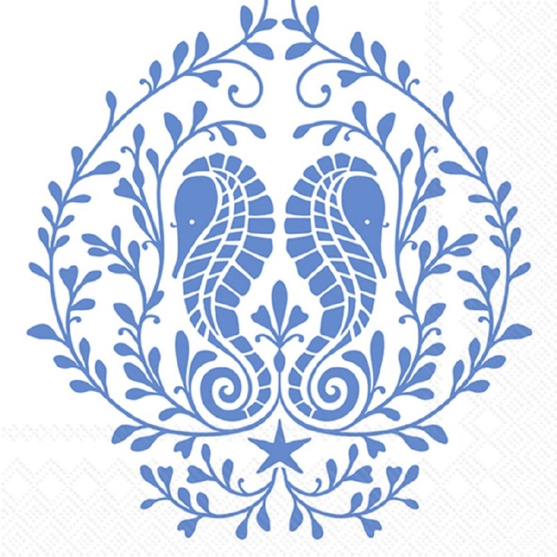 5" Sq Grand Blue Seahorse Beverage Napkins