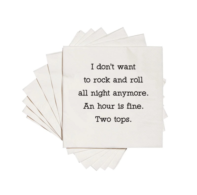 I don't want to rock and roll all night anymore, an hour is fine, two tops cocktail napkins