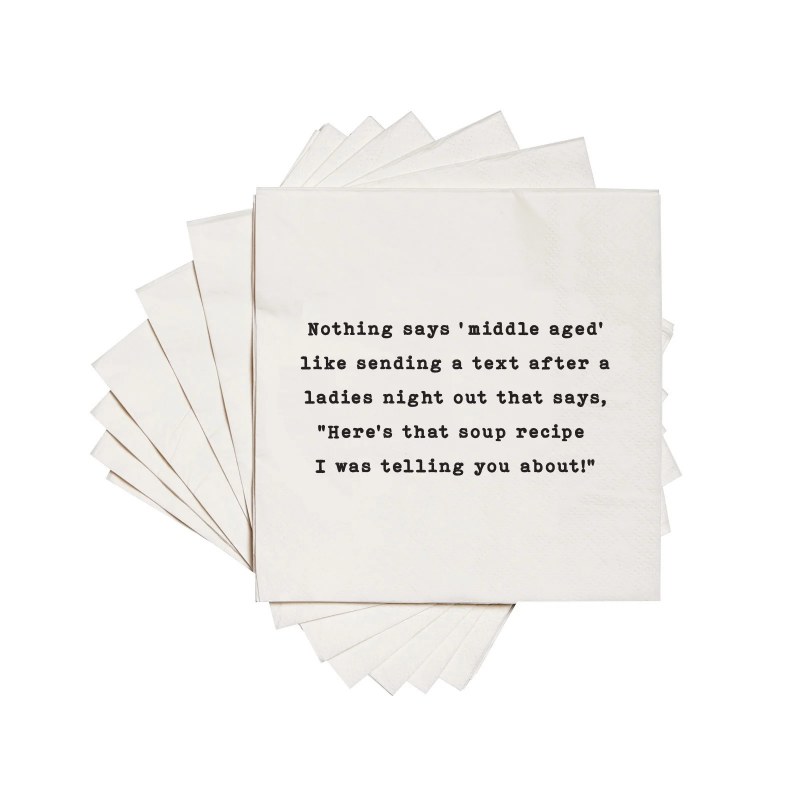 Nothing says middle aged like sending a text after a ladies night out that says Here's the soup recipe I was telling you about cocktail napkins