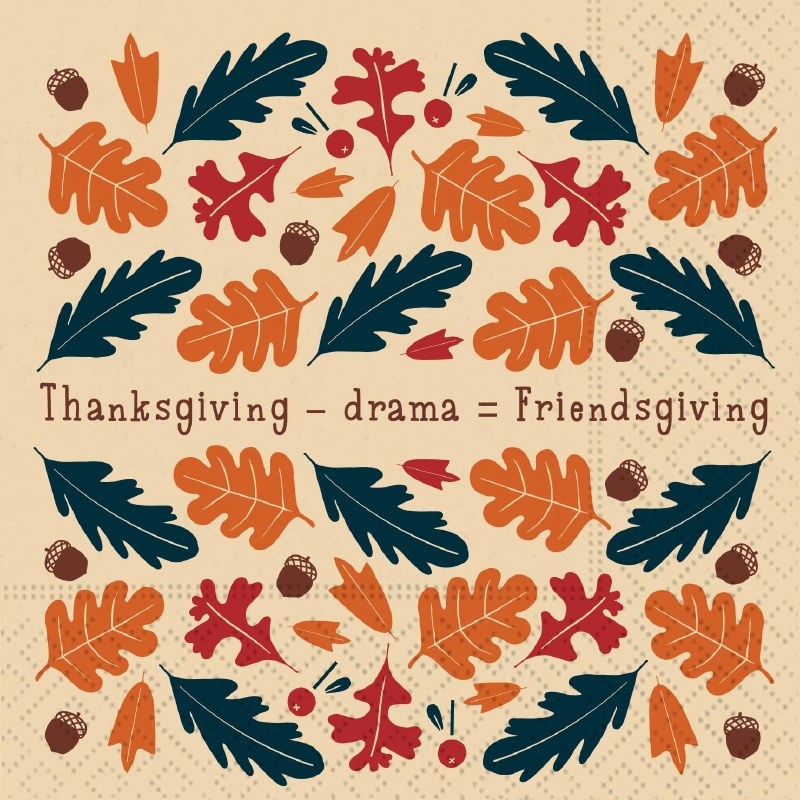 5" Square "Thanksgiving - Drama = Friendsgiving" Fall & Thanksgiving Beverage Napkins