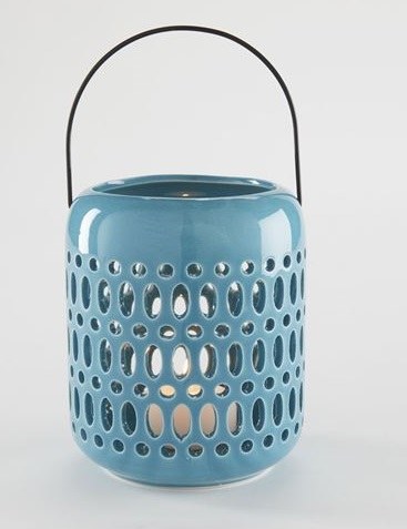 6" Aqua Ceramic Openwork Dash Dot Lantern