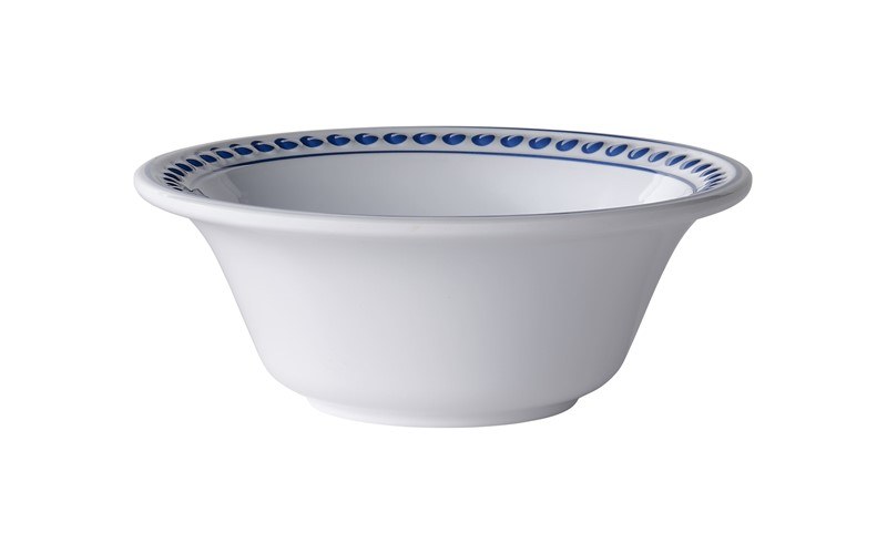 The 6" Round Blue Dots Rim Melamine Bowl adds a playful touch to your tableware with its charming blue dots pattern around the rim. Crafted from durable melamine, this bowl is perfect for serving soups, salads, snacks, or desserts. It is dishwasher safe for easy cleaning but not suitable for microwave use. Ideal for both indoor and outdoor dining, this bowl combines style and practicality for everyday use or special occasions.