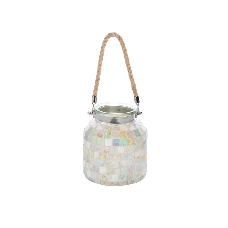 6" Round Multi Pastels Glass Mosaic Candleholder Lantern