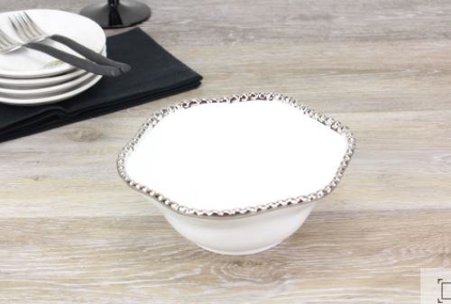 6" Round White and Silver Beaded Ceramic Bowl by Pampa Bay
