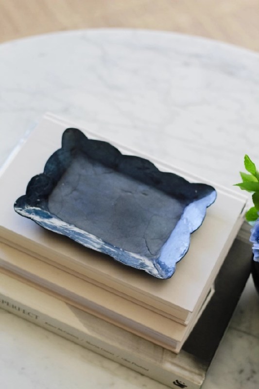 6" x 7" Blue Scalloped Edge Capiz Shell Decorative Tray