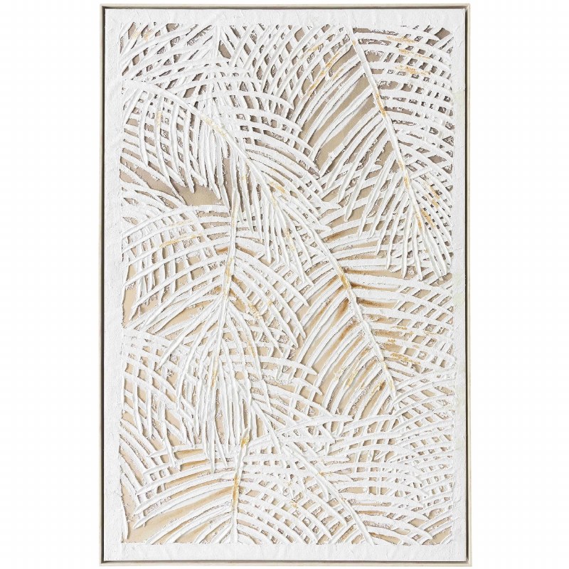 60" x 40" White Palm Fronds Tropical Framed Canvas