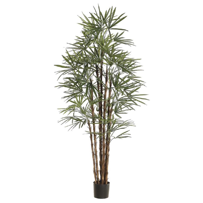 6.1' Faux Green Honey Rhapis Palm Tree in a Black Pot