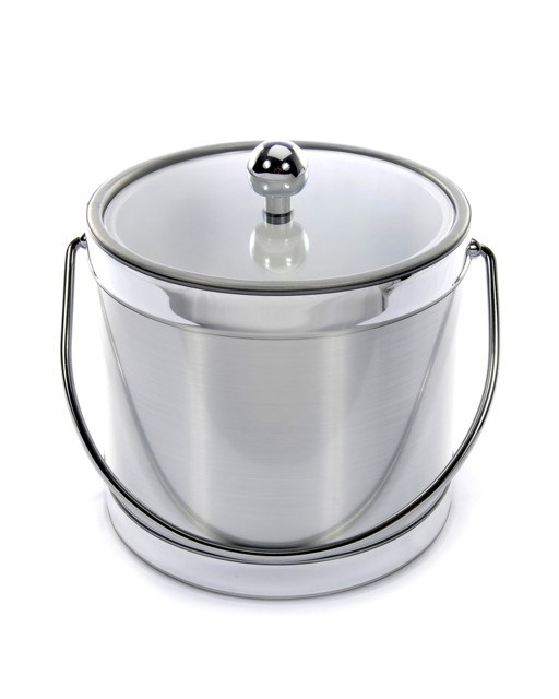 Our 3-quart insulated, American made ice bucket is more than just a great ice bucket. It is perfect for cooling wine, champagne, soda, or even serving chips, candy and pretzels. It is made with a brushed finish and double insulated wall design to prevent condensation with a tight fitting lid.