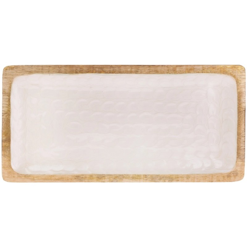 7" x 14" Brown and White Wood Tray