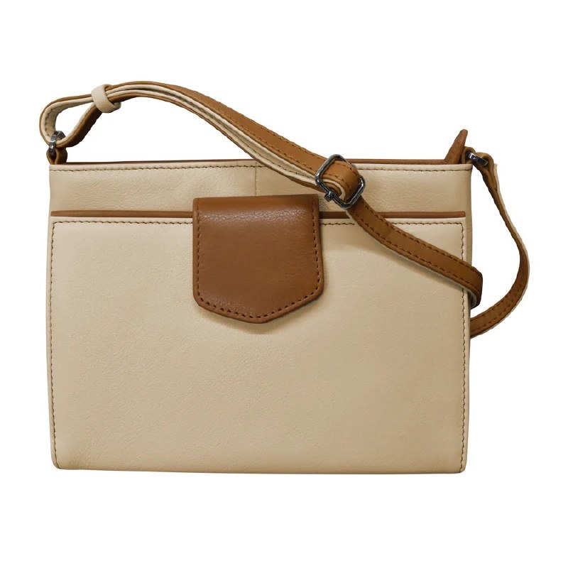 7" x 9" Stone and Antique Saddle Pointed Tab Crossbody Organizer