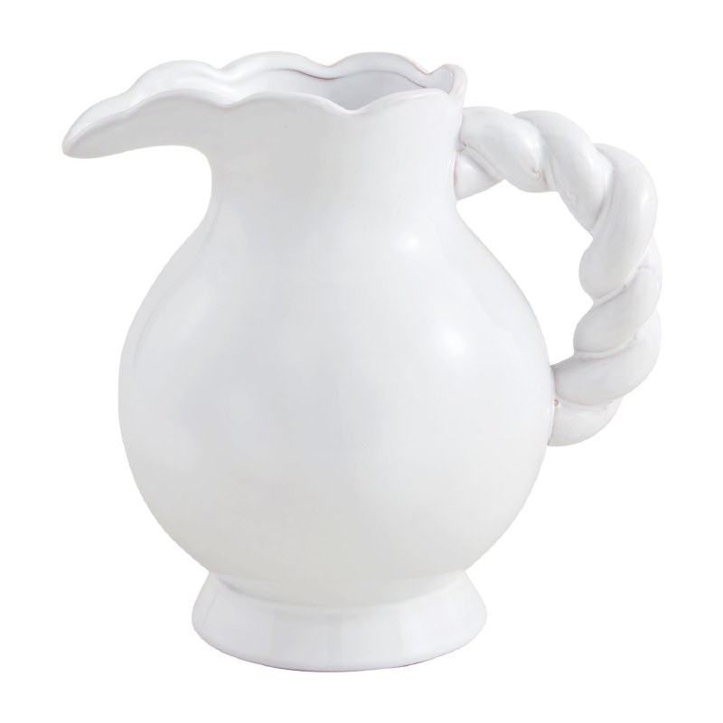 70 Oz White Textured Ceramic Twist Handle Pitcher by Mud Pie