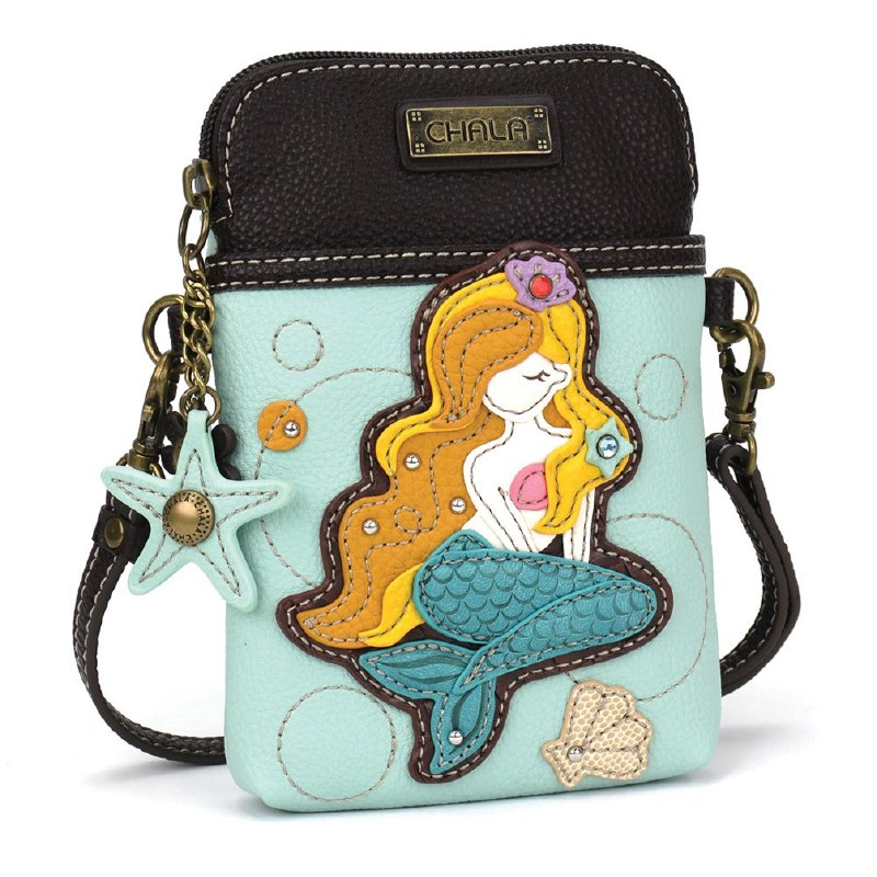 8" Blond Mermaid on Blue Cellphone Crossbody Purse