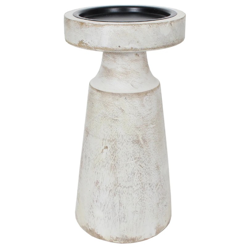 8" White Washed Wood Pillar Candle Holder