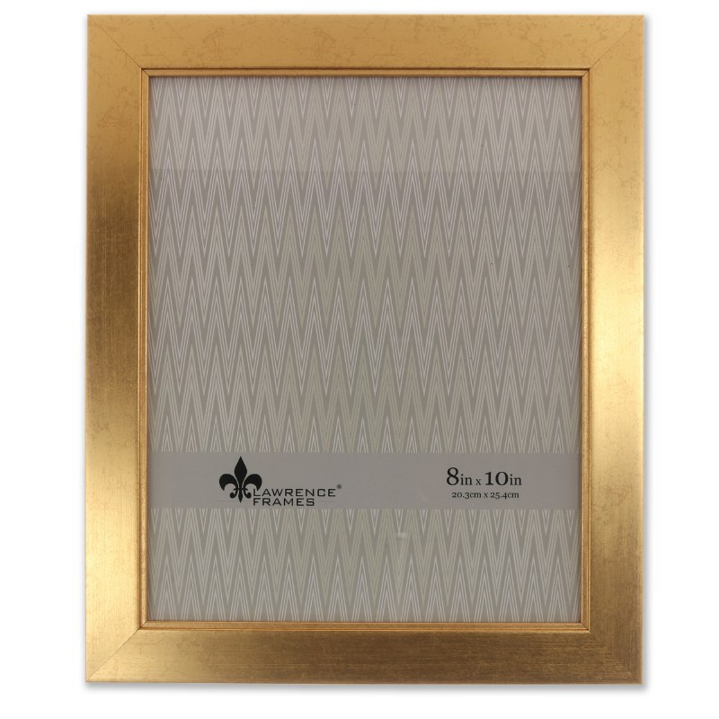 High quality composite decorative picture frame with burnished gold finish. Easy open turn button black velvet backing makes it simple to open and insert your photo. Includes hangers for wall mounting and easel backing for tabletop display. This beautiful frame comes with glass to protect your photo, and is individually boxed.