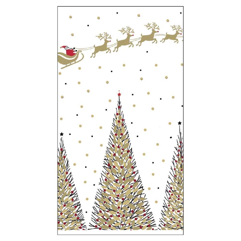8" x 5" Gold and Black Trees With Santa Sled Guest Towel