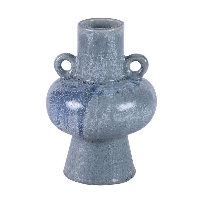 The charming, earthenware Derry rounded vase features a curved and fluted profile with amphora style handles. This earthenware piece has an eye catching blue quartz finish in a reactive glaze, making it perfect for adding a pop of color to a living room or hallway.