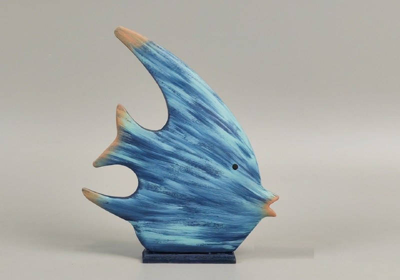 9" Two Toned Blue Wood Angelfish Statue