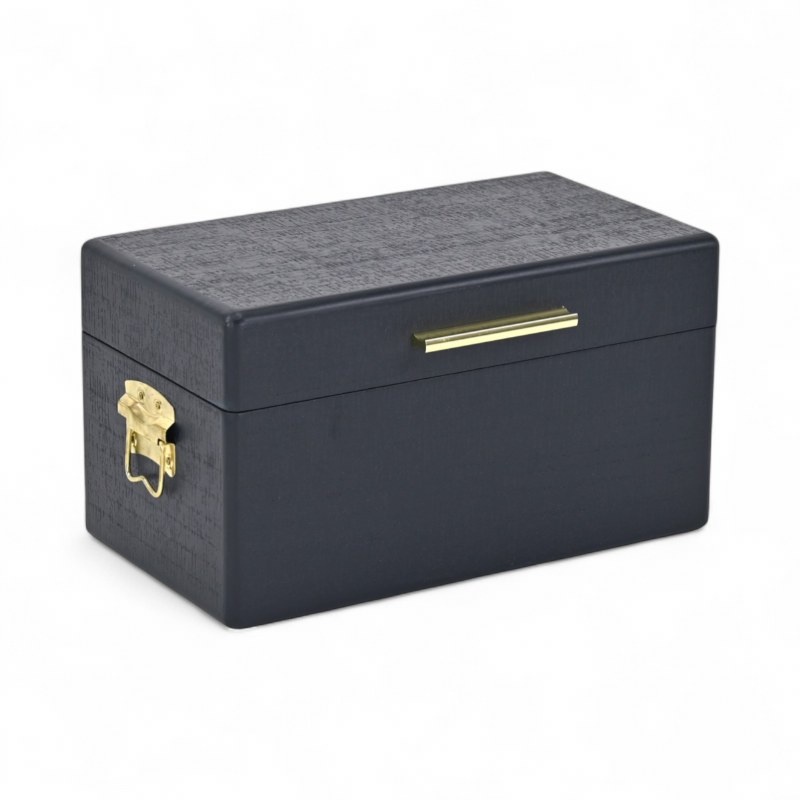 9" x 15" Navy Wood and Gold Metal Accents Decorative Box
