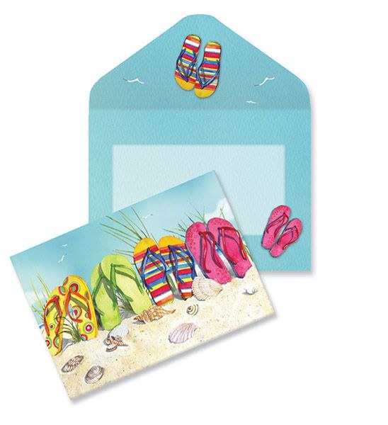 Box of Ten 4" x 5" Multicolor Flip Flops on the Beach Note Cards