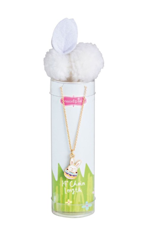 Easter Charm Necklace with White Pom-Pom Bunny by Mud Pie