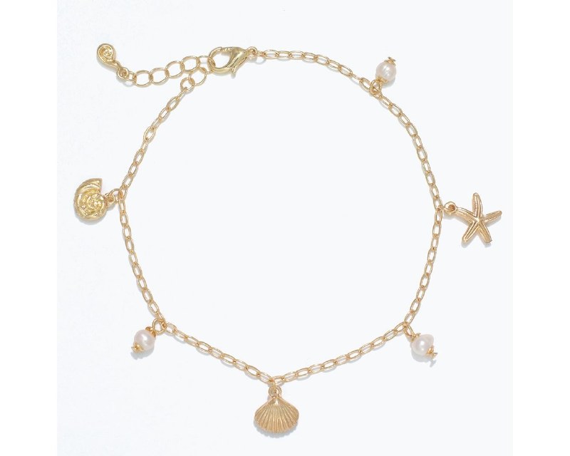 Elevate your jewelry collection with this stunning gold toned anklet. Featuring a blend of detailed sea life charms and shimmering faux pearls, this piece brings a sophisticated coastal vibe. Perfect for vacations, summer events, and everyday elegance.