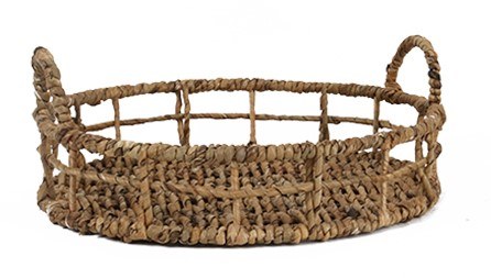 Large Round Natural Woven Coastal Banana Leaf Tray With Handles