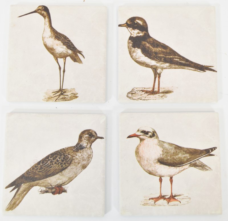 These ceramic coasters showcase vintage-style shorebird illustrations that bring coastal charm to any table. Perfect for protecting surfaces while adding seaside character to your home.