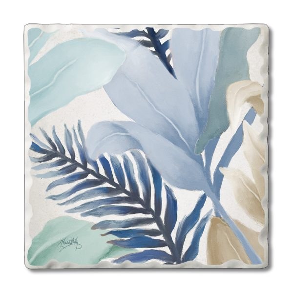 Set of Four Square Blue Palm Fronds Coasters