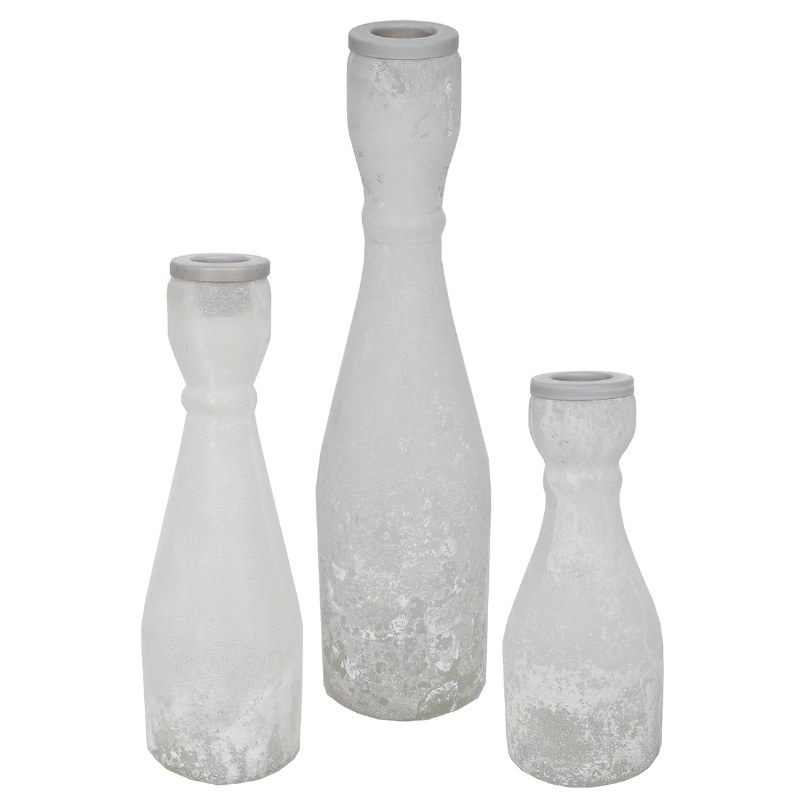 Set of Three 10", 8", 6" White Glass Taper Candleholders