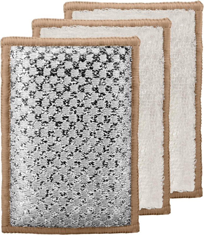 - Measuring perfectly for hand comfort, the Bambou scrub sponges feature a dual-texture design: a shaggy looped outer weave for maximum absorbency and a tight under-weave for effective non-scratch scrubbing on one side and a stainless steel mesh for heavy scrubbing on the other side.