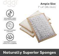 - The Oggi Bambou natural kitchen scrubbing spong combines unparalleled eco-friendliness with exceptional cleaning prowess. Each sponge is constructed from 91% bamboo-derived rayon cellulose fibers and 9% polyester, ensuring not only sustainability but also durability and shape retention.