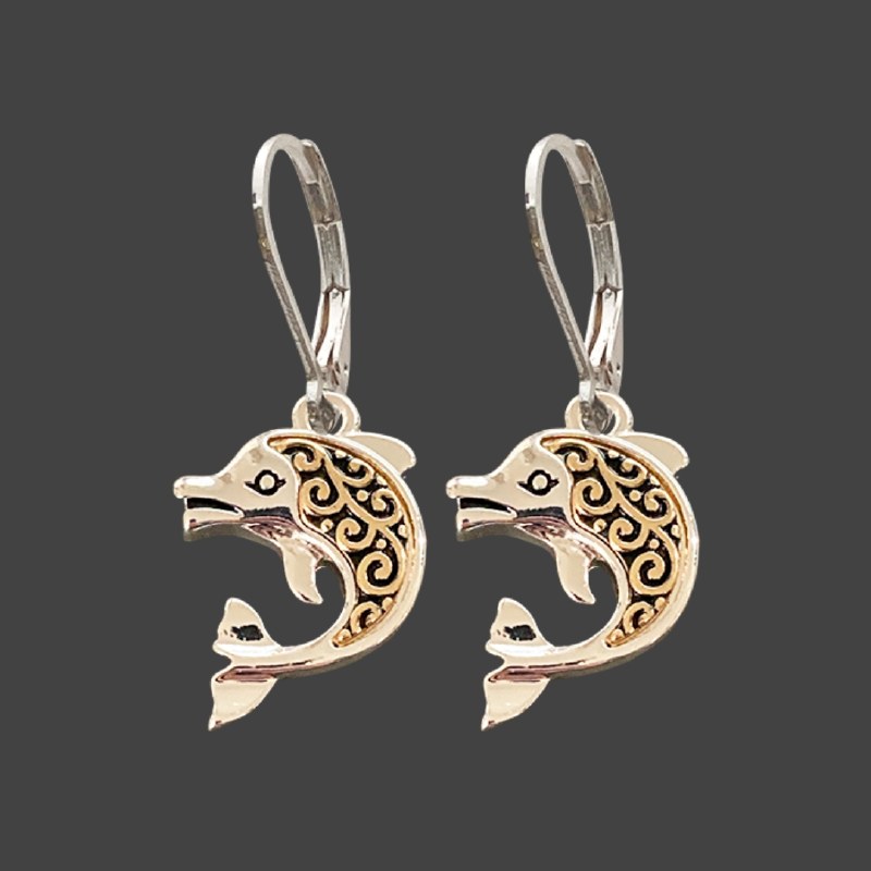 Silver and Gold Toned Dolphin Earrings