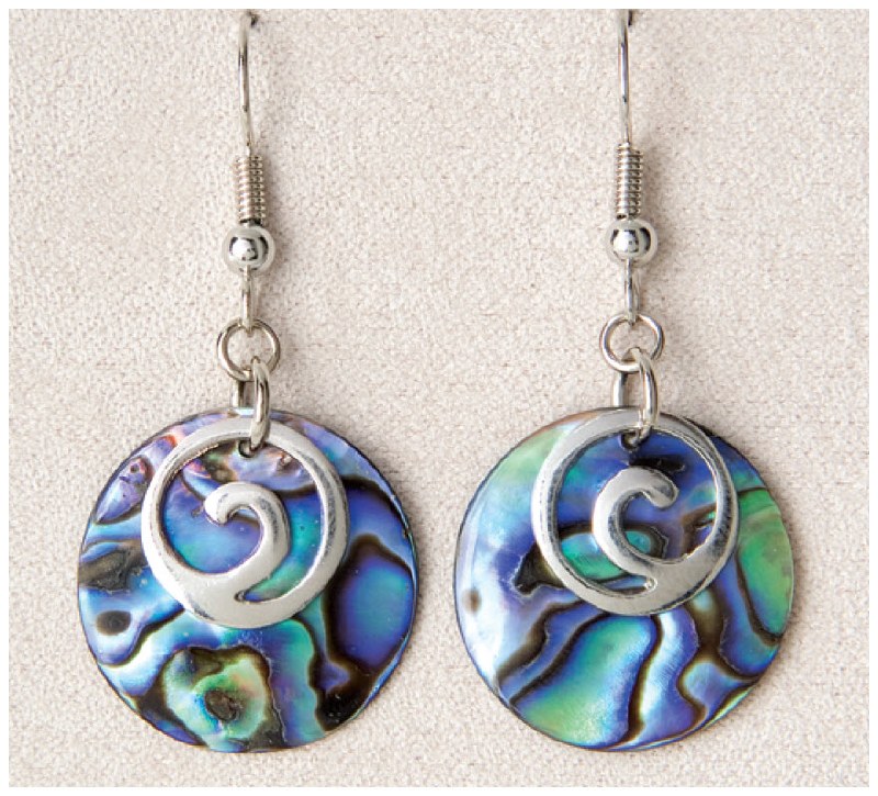 A pair of beautiful abalone shell earrings, matched by hand to perfectly complement each other. This item comes in a clamshell jewelry box, pre-priced and ready to sell. A perfect gift for your customers to take home. All of our abalone shell is a by-product of a sustainable food fishery. All earring posts and wires are made of hypoallergenic surgical steel.