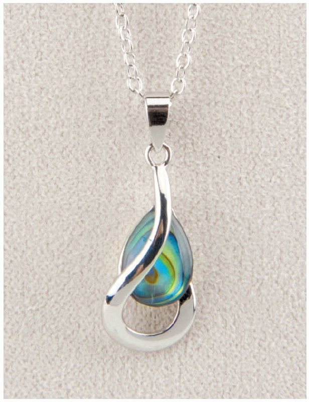 A lovely abalone shell necklace. This item comes in a clamshell jewelry box, pre-priced and ready to sell. A perfect gift for your customers to take home. All of our abalone shell is a by-product of a sustainable food fishery.
