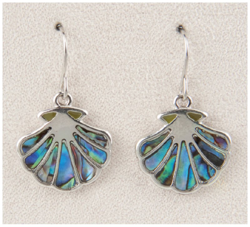 Silver Toned and Abalone Enamel Scallop Shell Earrings