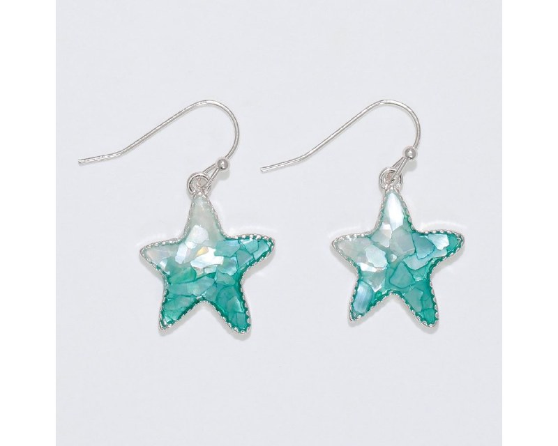 Silver tone starfish with aqua and white shell inlay