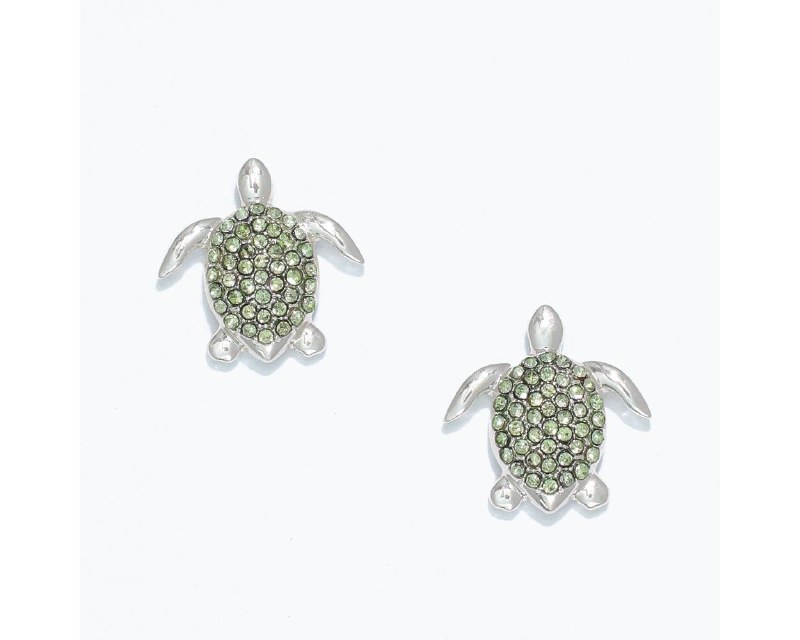 Cute silver toned sea turtles with mint polystone crystals earrings