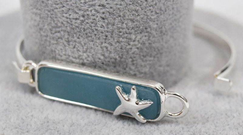 Silver Toned and Light Blue Polystone and Starfish Bracelet