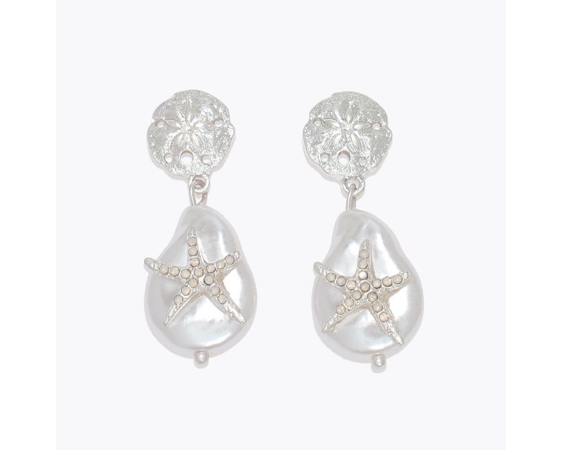 Silver TOned Sand Dollar and Starfish Drop Earrings