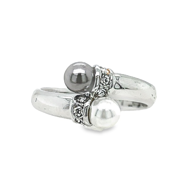 Size 10 Black and White Faux Pearls Sterling Silver Plated Ring