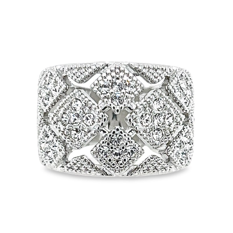 Size 10 Plaid Cubic Zirconia Sterling Silver Plated Ring