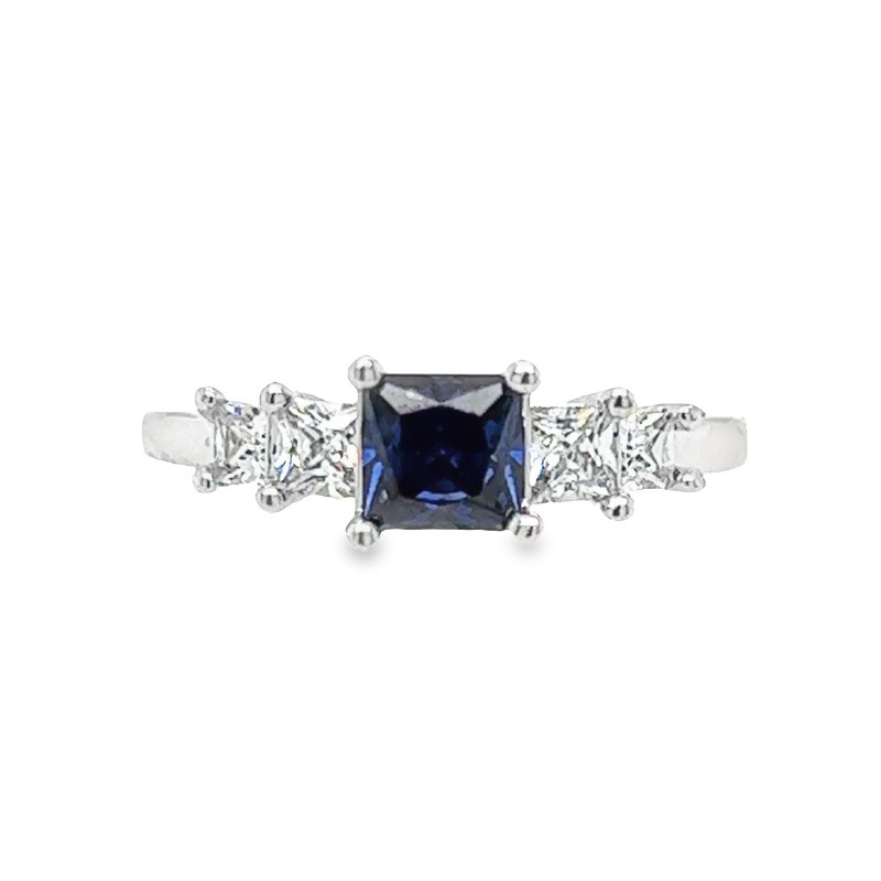 Size 10 Square Blue Cubic Zirconia Sterling Silver Plated Ring